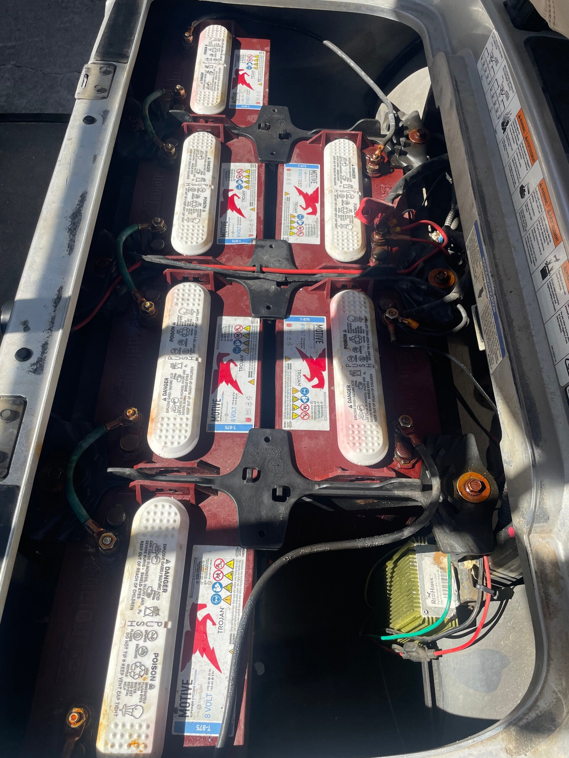 Take a look at the typical setup we encounter. Often cumbersome and less efficient, these traditional battery systems are what we transform. Notice the space they occupy and the potential for corrosion, issues we expertly resolve.
